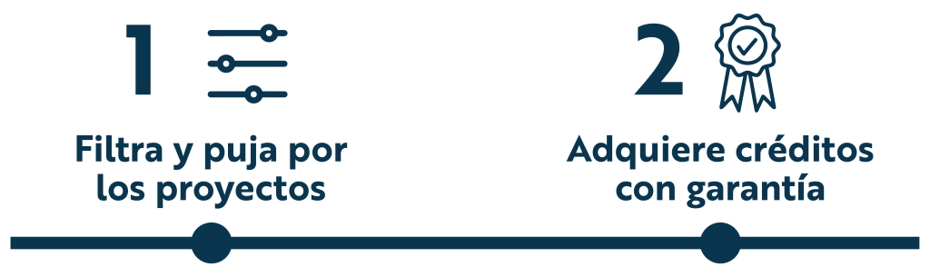 Empresas, instituciones o personas interesadas en compensar su huella de carbono de manera confiable. En la plataforma pueden explorar y filtrar proyectos certificados según sus criterios de sostenibilidad, participar en subastas pujando de forma competitiva y adquirir créditos con total garantía de validez y trazabilidad. De esta forma, aseguran que su inversión genera un impacto ambiental real y medible.